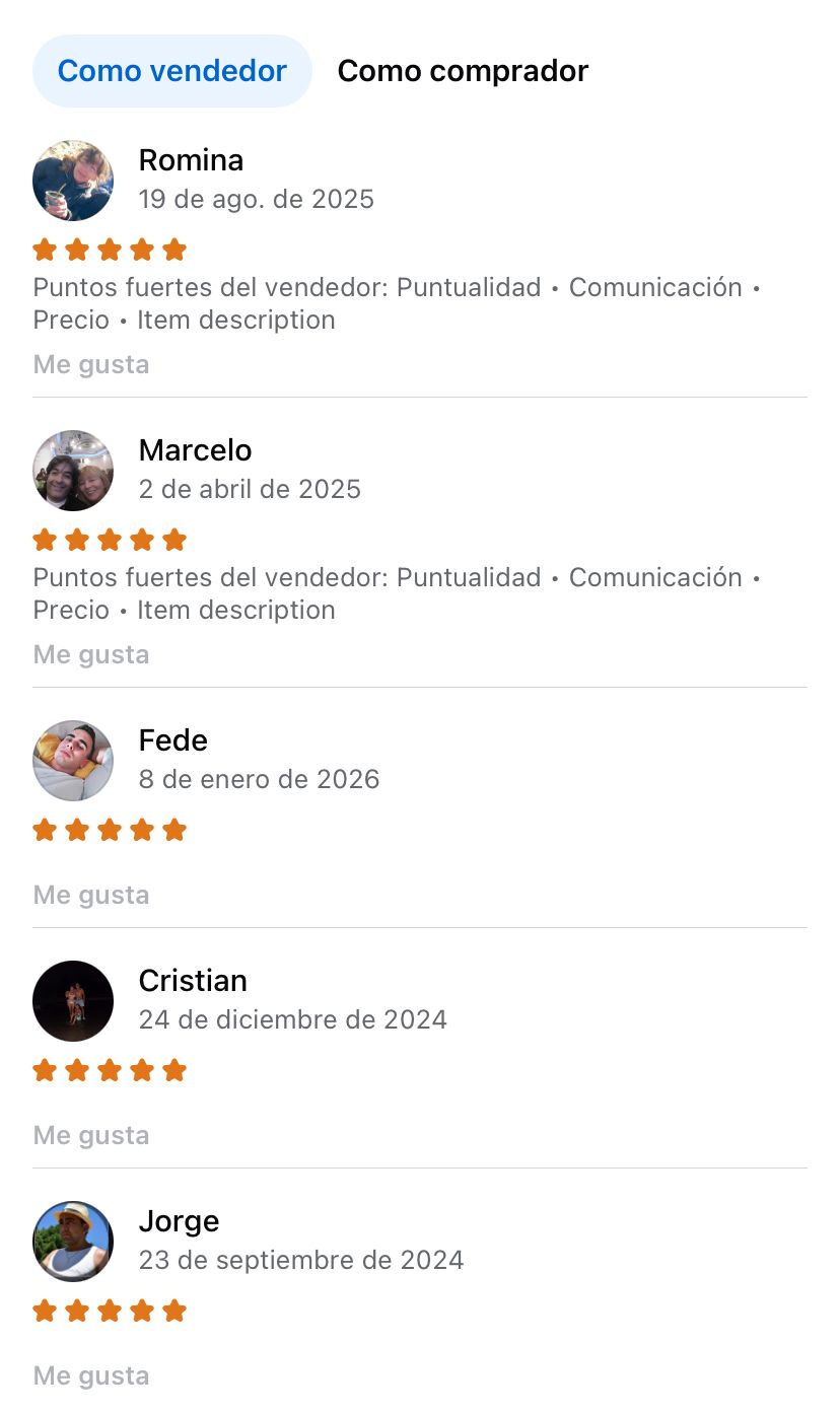Más de un año vendiendo con calificación perfecta. Nuestros clientes destacan nuestra puntualidad y la calidad de los productos.